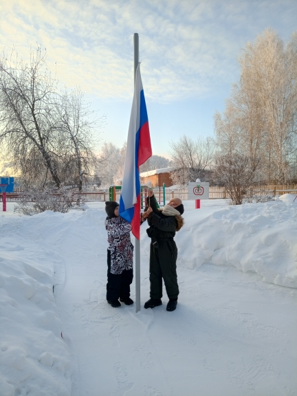 Сегодня честь поднять флаг была предоставлена победителям конкурса чтецов «Зима в стихах поэтов и писателей» Андрееву Тимуру и Калинкину Ивану.