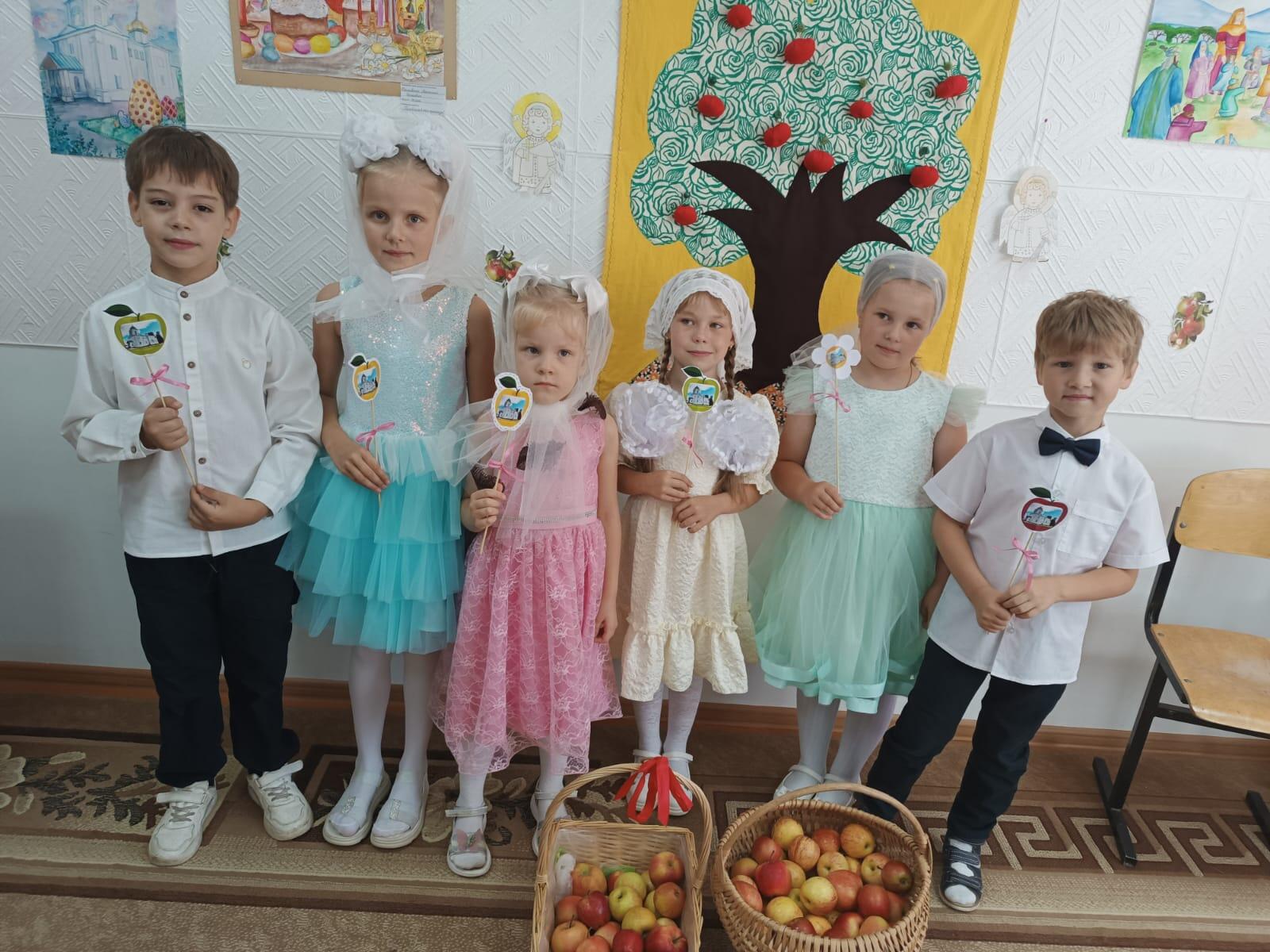 По приглашению Майковой Галины Павловны и батюшки Ионна воспитанники нашего детского сада в этот день вместе с педагогами Пикаловой О.А., Нестеренко Л.В. и родителями посетили Храм. Галина Павловна рассказала ребятам историю возникновения праздника, которому уже более 2 тысяч лет, а нашему Храму в том году исполнилось 165 лет. Далее дети отметили Яблочный Спас песнями, стихами, и танцами. Наши дети подарили гостям замечательные стихотворения «Преображение Господне» и «Яблочный Спас», а Валерия Бейкова спела под громкие аплодисменты песню «Что такое детство?». Позже дети узнали, что в Яблочный Спас обязательно соблюдается обычай одаривать всех близких, знакомых и даже прохожих яблоками, окропленными святой водой в храмах. Яблоко — символ плодородия и благополучия, поэтому, одаривая друг друга яблоками, люди желают тем, кому дарят подарки и угощения, всего самого наилучшего. Праздники такого характера помогают воспитывать в детях стремление к доброй жизни, желание подражать хорошим поступкам.