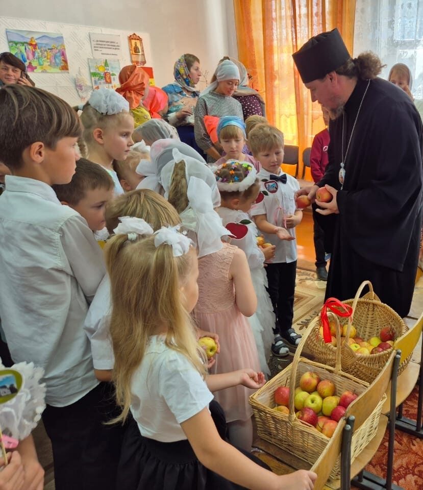 19 августа все православные отмечают великий праздник Преображения Господня, именуемый в народе Яблочный Спас. Воспитанники нашего детского сада были приглашены на этот светлый и добрый праздник в храм Преображения Господня. Рано утром все прихожане собрались в храме на торжественную литургию в честь праздника. Прихожане совершили Крестный ход вокруг храма, далее под открытым небом происходило настоящее таинство: после молитвы иерей Иоанн провёл традиционный обряд освещения плодов. Гостями праздника также были отец Михаил, Владыка Филарет епископ Колпашевский и Стрежевский.