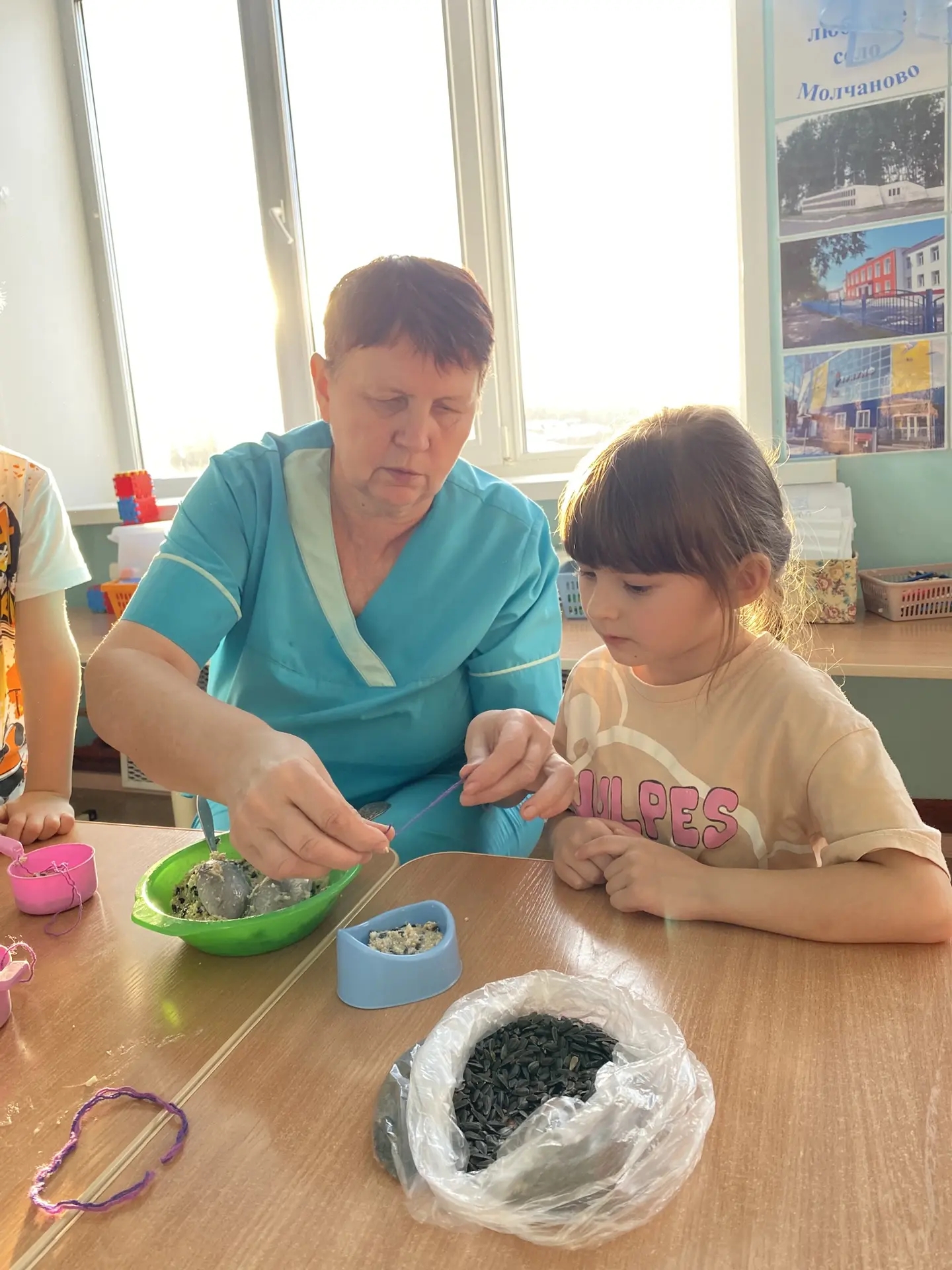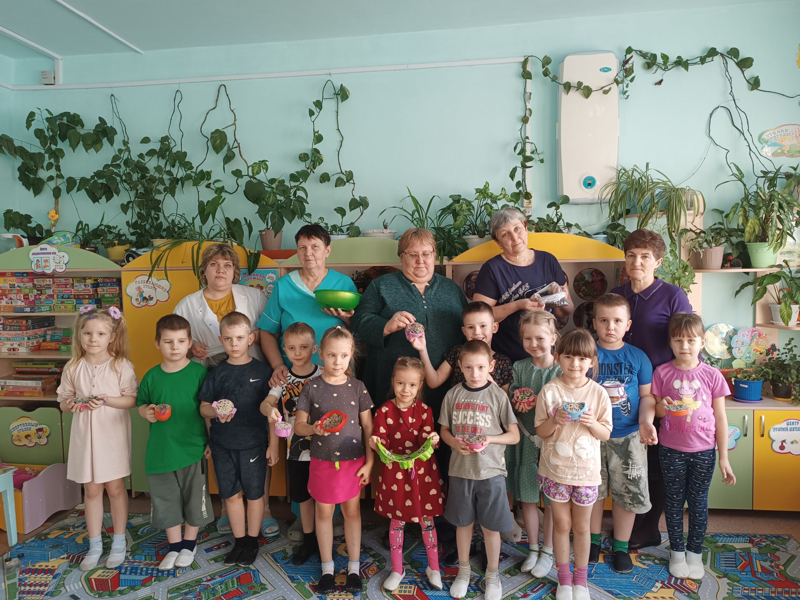 Под руководством опытных наставников Рындиной Татьяны Викторовны и Нестеренко Людмилы Витальевны все участники нашей мастерской с энтузиазмом создавали экокормушки из собранных детьми, родителями, педагогами, друзьями семечек и крупы. Все дружно работали,