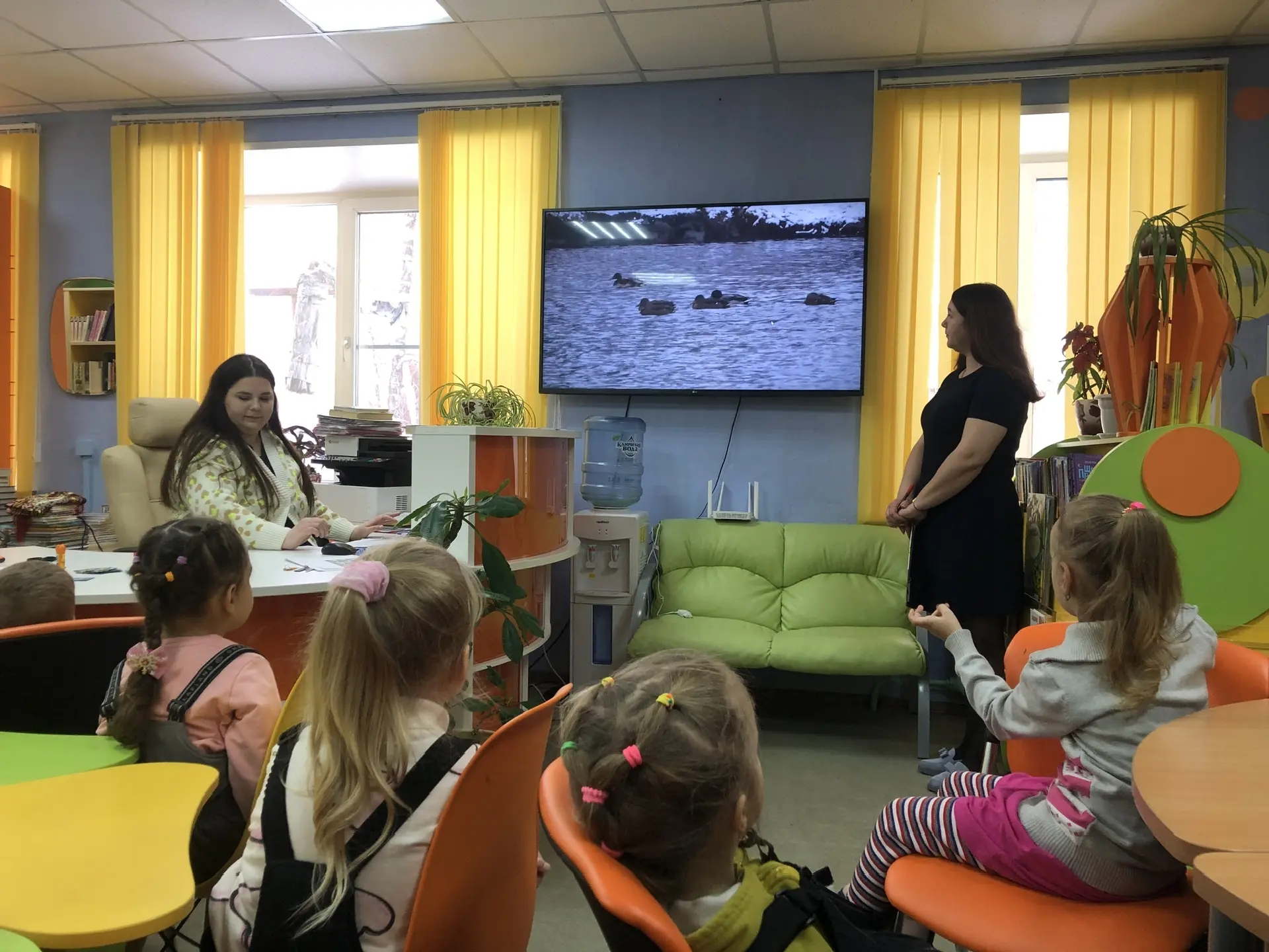 В пятницу, ребята старших групп и активисты Движения Первых, посетили библиотеку, с целью изучения исторических мест села.  Для них, библиотекари А.Д.  Колосова и Л.В. Голдовская,  приготовили мини-экскурсию в историю возникновения озера Токового. Ребята смогли рассмотреть озеро с высоты птичьего полета, полюбовались на любительское видео с плавающими утками на Токовом, смогли сравнить территорию озера до благоустройства и после, выявили значение озера для села и т.д. И поделились с работниками о своей взаимосвязи с озером (ходим на сезонные экскурсии, праздники и проводим там экологические десанты по уборке территории).