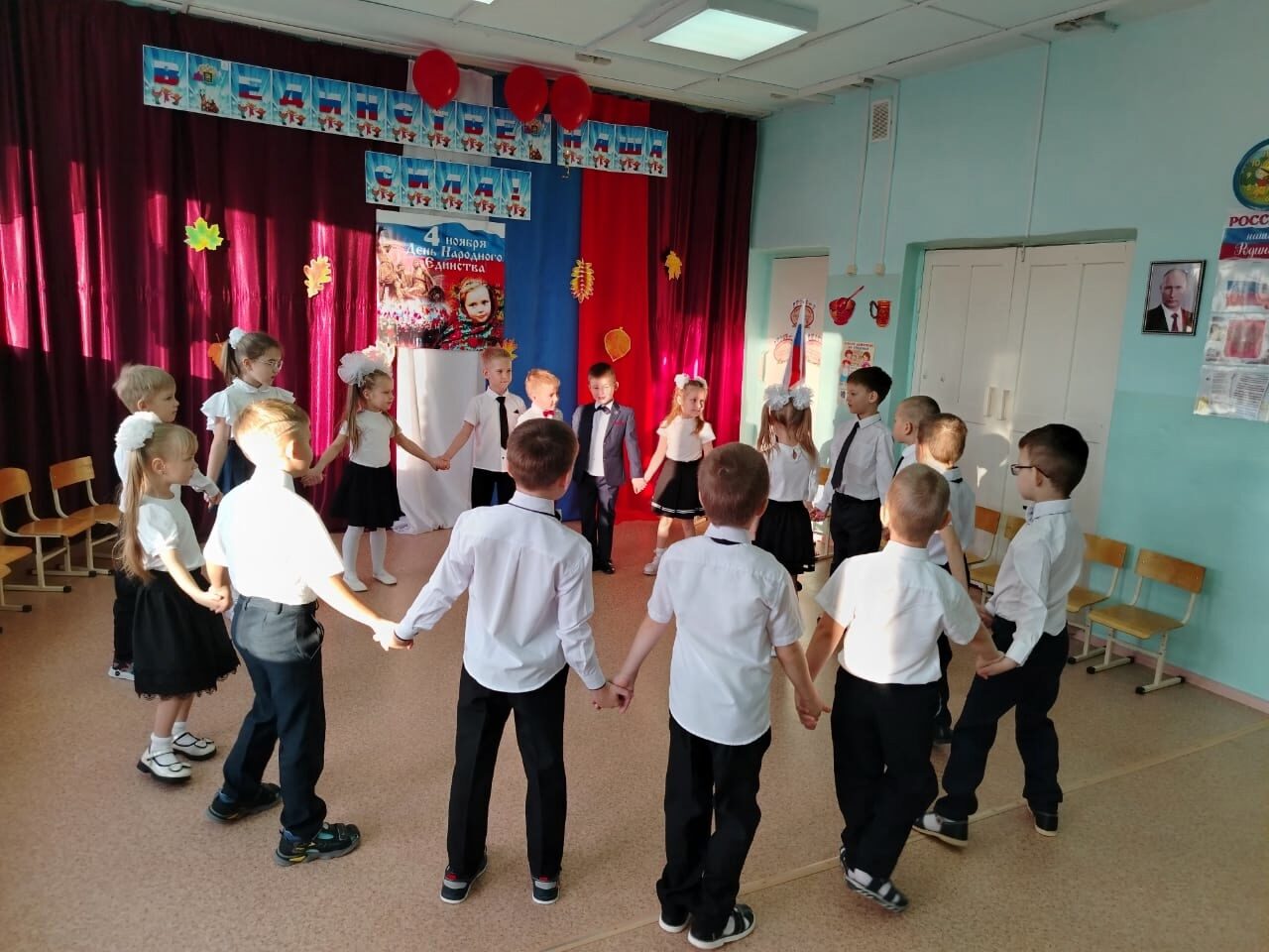 Сегодня, 5 ноября, в подготовительной к школе группе пришёл патриотический праздник «В единстве — наша сила!». Объяснить детям дошкольникам, что такое единство непросто. Перед праздником в группе были проведены беседы, разучивались стихи и песни о Родине. Педагоги в игровой и доступной форме постарались объяснить суть праздника Дня народного единства. И вот наши дети шагают на праздник под песню «Россия — хохлома», шагают маленькие россияне, будущее нашей России. Дружно и слаженно поют и подпевают Гимн Российской Федерации и песню «Наш триколор». Вот это и есть народное единство. Празднуя День народного единства мы показываем любовь и уважение к прошлому нашей Родины, это символ гордости за наших предков, которые отстояли свою независимость. Ребята пополнили свои знания по истории возникновения праздника, поговорили об ополчении, рассмотрели фотографии Кузьмы Минина и Дмитрия Пожарского. и икону Казанской Божьей матери, вспомнили былинных богатырей: Садко, Алешу Поповича, Илью Муромца, Добрыню Никитича…В завершении праздника устроили большой хоровод «Мы на свет родились, чтобы радостно жить». Очень важно беречь то бесценное наследие, которое нам передали наши предки. И пусть над нашей головой всегда будет мирное небо, ярко светит солнышко, а в душе обязательно будет отличное настроение!