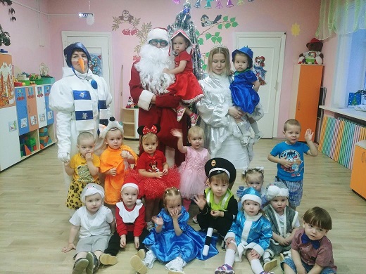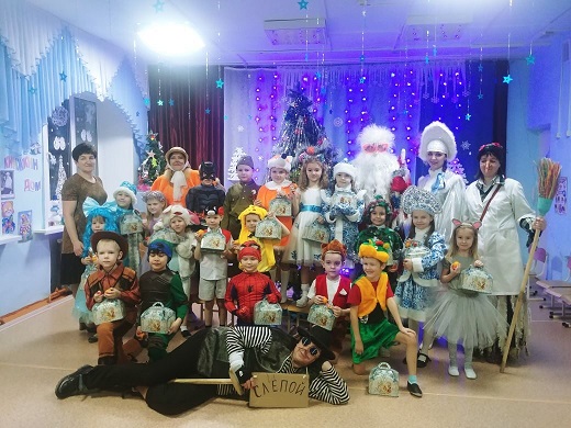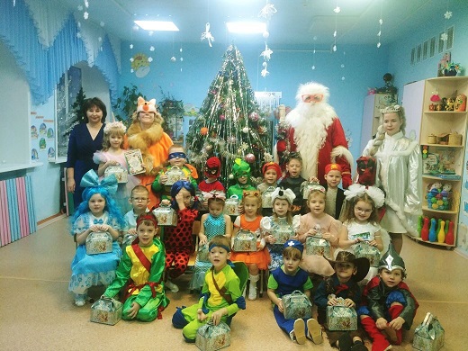 Новый год – это радостная сказка и для детей и для взрослых. Череду новогодних праздников начали самые маленькие воспитанники нашего детского сада, ребятишки группы раннего возраста. Это была их первая встреча с главными героями праздника – Дедом Морозом (Рындина Т.В.), Снегурочкой (Жданова Т.В.) и Снеговичком (Нестеренко Л.В.). Детей восхищала сама атмосфера праздника и волшебства. Разноцветные, сверкающие гирлянды и ярко украшенная ёлочка принесли детям ощущение чуда. Малыши с удовольствием играли, читали стихи и танцевали. Все педагоги групп провели огромную работу по оформлению групп и праздничных окон, за это можем им сказать СПАСИБО! Сколько фантазии, старания было проявлено!!! Как интересно было все рассматривать… И вот наступил долгожданный праздник для ребят средней группы. Свою группу и елочку они украшали игрушками, мишурой, писали и рисовали письма Деду Морозу и готовились к Новогоднему празднику, разучивали песни, танцы, стихи. Но на праздник вместо Деда Мороза (папа нашего воспитанника) вдруг явилась Лиса – проказница (Васюкова И.М.), она стащила валенки у Волшебника и решила испортить всем праздник. Но Дед Мороз с помощью волшебного посоха прекратил ее проказы и вместе со Снегурочкой (Жданова Т.В.) и Лисой Патрикеевной без устали веселили детишек. Все были в полном восторге! Праздник прошел на одном дыхании, запомнился и детям и взрослым. После праздника все получили сладкие подарки от «бегающего мешка». Все были счастливы! Праздник для воспитанников младшей группы так же был долгожданным. В самом начале праздника всех гостей и ребят поздравил Заяц – почтовик (символ года) – Нестеренко Л.В., он вручил всем поздравительные открытки, был очень любезен со всеми, поиграл в подвижные игры. Сюрпризным моментом стал дремлющий Дед Мороз (Рындина Т.В.), которого воспитанники пытались разбудить веселой песней и игрой, затем Дед Мороз и Снегурочка (Утанан Е.П.) водили хоровод, играли и слушали стихи, которые подготовили ребята. Праздник прошел весело и непринужденно. Все получили сладкие подарки! Дети подготовительной группы тоже верят в чудеса и в волшебство! Смешно и комично свои роли на празднике сыграли Кот — Базилио (Рындина Т.В.) и Лиса – Алиса (Скобелева С.И.). и несравненная «служба спасения» Бабушка – Яга (Утанан Е.П.). Роли Деда Мороза и Снегурочки сыграли наши любимые родители воспитанников. За что им ОГРОМНОЕ СПАСИБО!!! Новогоднее представление разыгранное героями было великолепное! Все дружно болели за Кота – Базилио и Лису – Алису, много смеялись и веселились. После представления все дети получили долгожданные подарки от Деда Мороза и Снегурочки! Все яркие воспоминания о праздниках теперь можно увидеть на фотографиях!