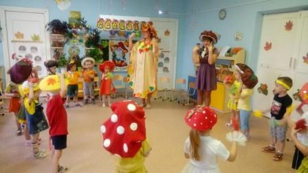 Заканчивается сентябрь и золотая осенняя пора, а самые маленькие воспитанники нашего детского садика, уже дали старт веселым осенним развлечениям. Дети младшей группы, вместе со своим грибом Боровиком –машинистом (Нестеренко Л.В) «путешествовали» на грибной электричке в волшебный лес, останавливаясь то на станции Дорожкино, то на станции Лукошкино, то – Подъелкино, то – Березкино… На пути повстречались с красавицей Золотой Осенью (Рындиной Т.В), знающей все, что где растет. Осень помогла ребятам с помощью стихов, песен и загадок добраться до станции, где живет Лесовичок (Утанан Е.П). Лесовичок для детей приготовил сюрприз! – дудочку – погудочку, помощницу для сбора грибов. Многообразная атрибутика предала развлечению яркость, красочность, вызвала бурю эмоций и радость в детских глазах.!