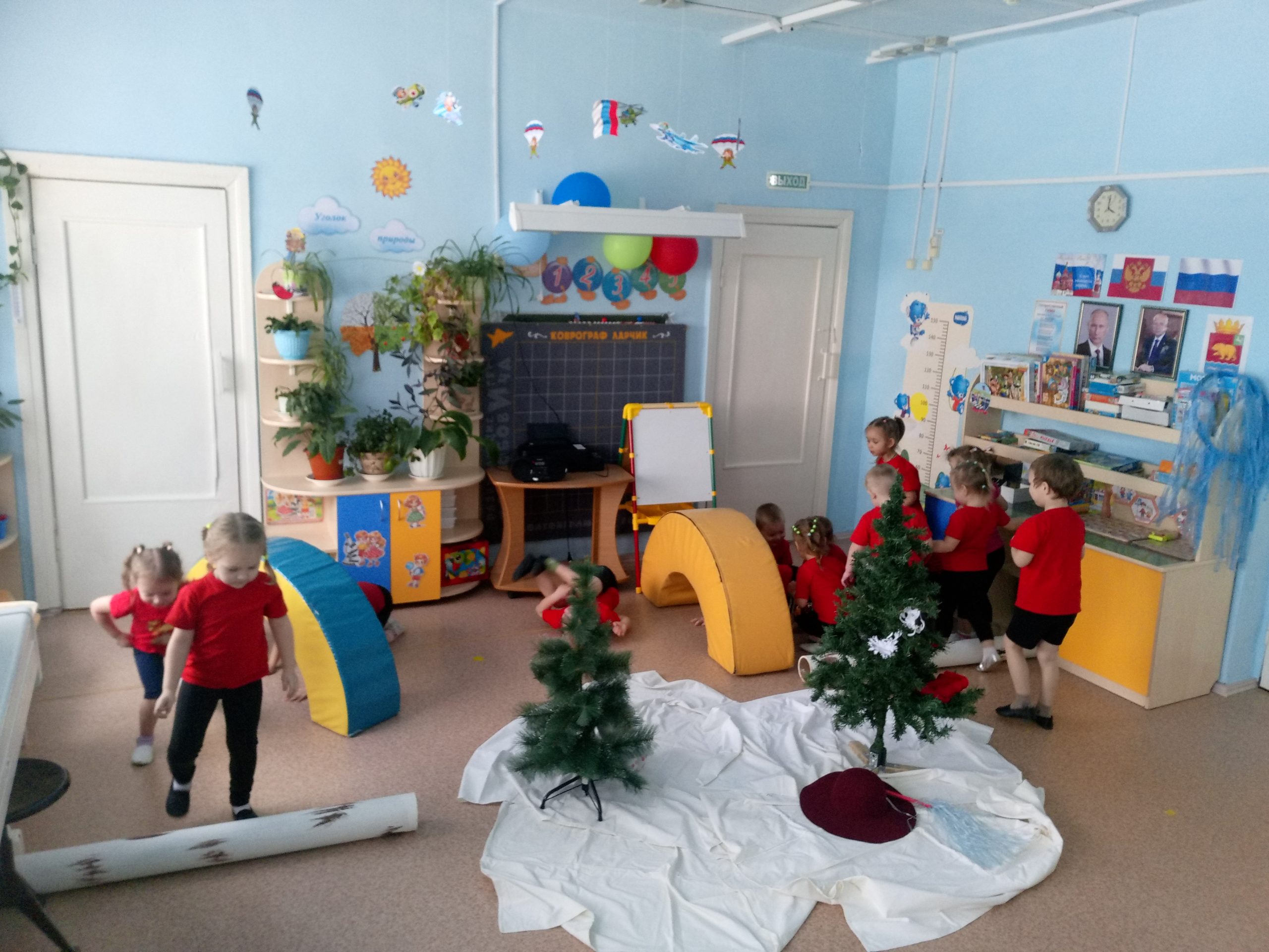 Сегодня, ребята младшей группы, на физкультурном досуге «Белая, пушистая..», совершили путешествие в зимний лес. Они перешагивали через бревна, подлезали под кусты (мягкие модули), ехали на «музыкальных саночках». А в лесу их ждали разные чудеса и подвижные игры: «Зайки и ветерок», «Снежная баба», «Снежинки», «Заморожу» (с рукавичками Деда мороза), «Взятие крепости». Время прошло быстро и надо возвращаться обратно в детский сад. Скажем Зимушке спасибо и до свидания!