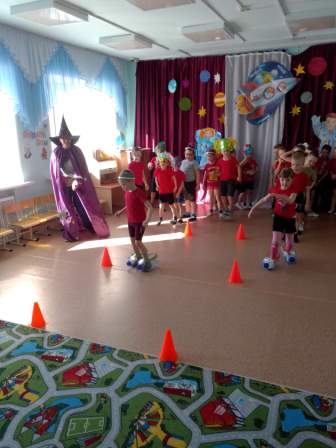 А ребят средне-старшей группы, инструктор физвоспитания Рындина Т.В. и Звездочет ( в-ль Скобелева С.И.) пригласили в Школу юных космонавтов. Работа была сложная и ответственная, не все сразу получалось. А ведь надо было и построить ракету, и выйти в открытый космос, чтобы посмотреть поломку обшивки ракеты, поймать космическое питание, собрать метеориты, научиться ходить на планетоходах. Обучались две команды : «Ракета» и «Спутник» и больше звезд зажглось на небе команды «Ракета». В конце мероприятий Звездочеты подарили ребятам раскраски о космосе. Веселые и интересные праздники, бесспорно, запомнились воспитанникам МБДОУ, и не исключено, что кто-то из них, сам захочет стать космонавтом, чтобы прославить нашу страну.