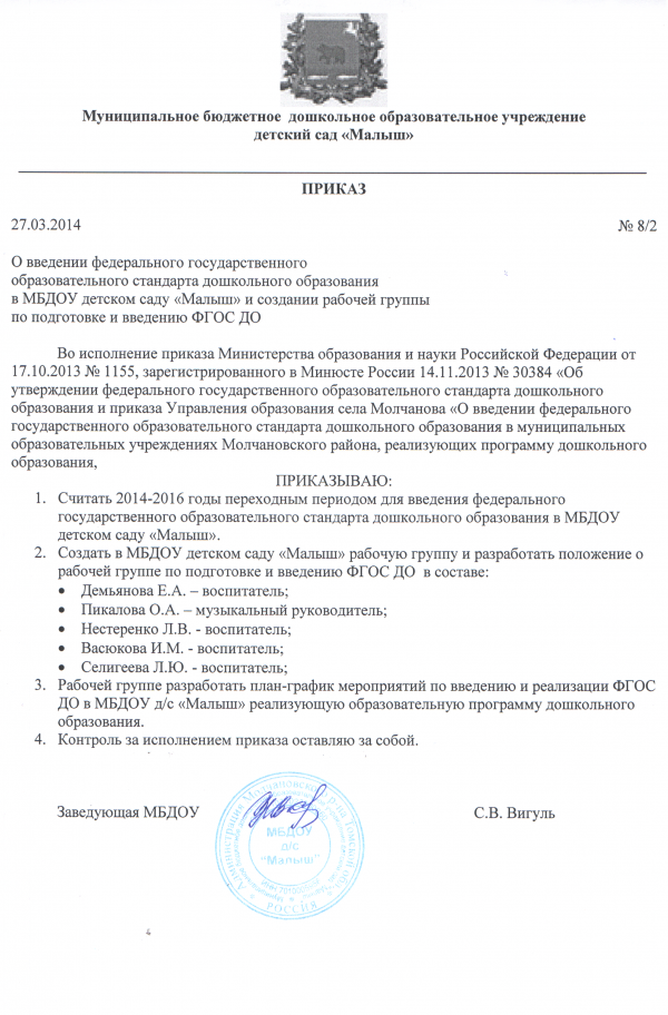 Приказ о введении ФГОС ДО