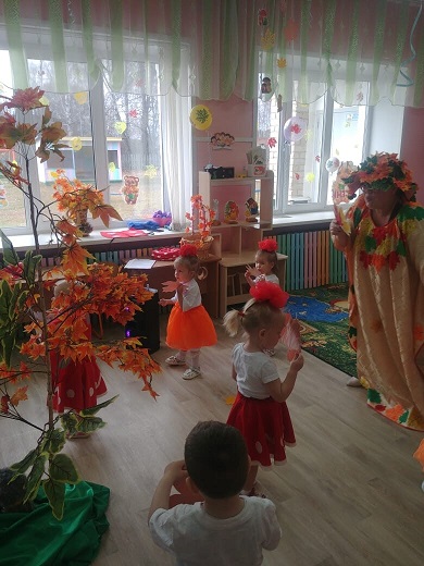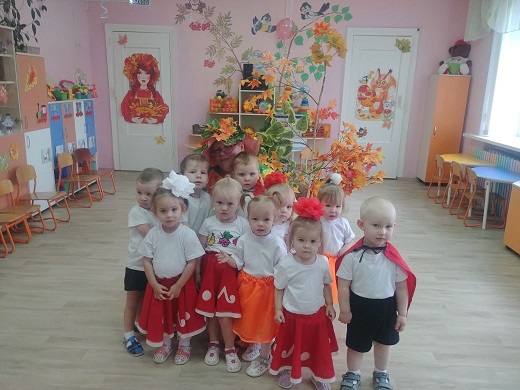 Казалось, что совсем недавно наши малыши пришли в детский сад. А сегодня они уже танцуют и играют на своем первом празднике. Для них это первый опыт и первые впечатления. В гости к нашим малышам приходили лесные жители Ежик и Медвежонок и рассказали, как они готовятся к зиме. Детки с удовольствием показали Ежику свой задорный танец «Грибочки», а с Медвежонком сыграли в игру «В гости к мишке». Яркой гостьей на празднике, конечно же, была Осень! (Кольмай С.Г.) Яркая и веселая она играла с ребятами, пела песни и танцевала. А запоминающимся эпизодом праздника стал сюрпризный момент – появление Тучки – Капитошки (Жданова Т.В.), которая поиграла с малышами в задорную игру с «волшебными капельками». Было удивительно видеть восторженные глаза наших воспитанников, их звонкий смех, море улыбок и веселья. Хоть и говорят, что осень унылая пора, но дети, как никто другой, способны радоваться шороху золотистых опавших листьев под ногами, дождику, под которым так интересно гулять под зонтиком, шлепать по лужам. Самый первый праздник у малышей получился ярким, веселым и увлекательным!