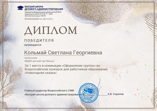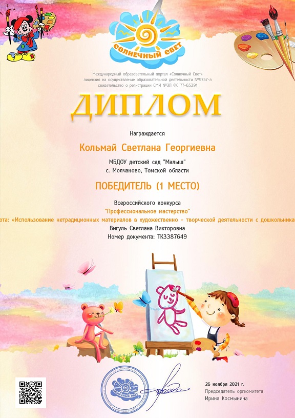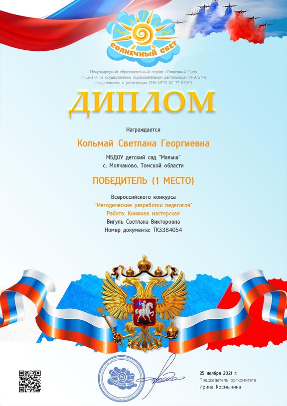 Квалификация по диплому: воспитатель в дошкольных учреждениях
