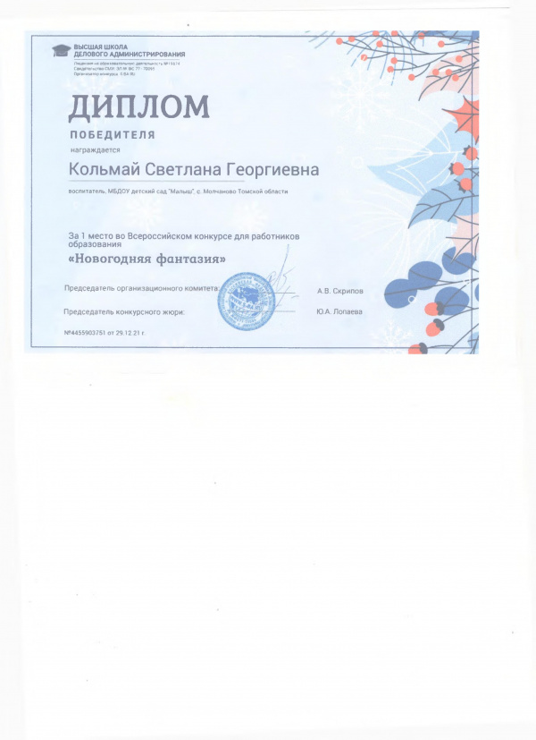 Квалификация: Первая квалификационная категория