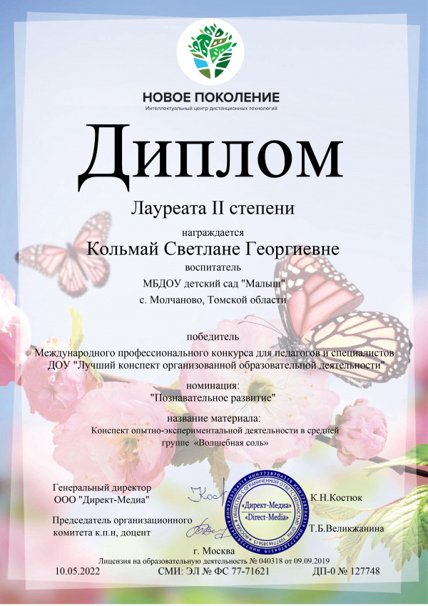 - Конспект опытно-экспериментальной деятельности в средней группе «Волшебная соль»