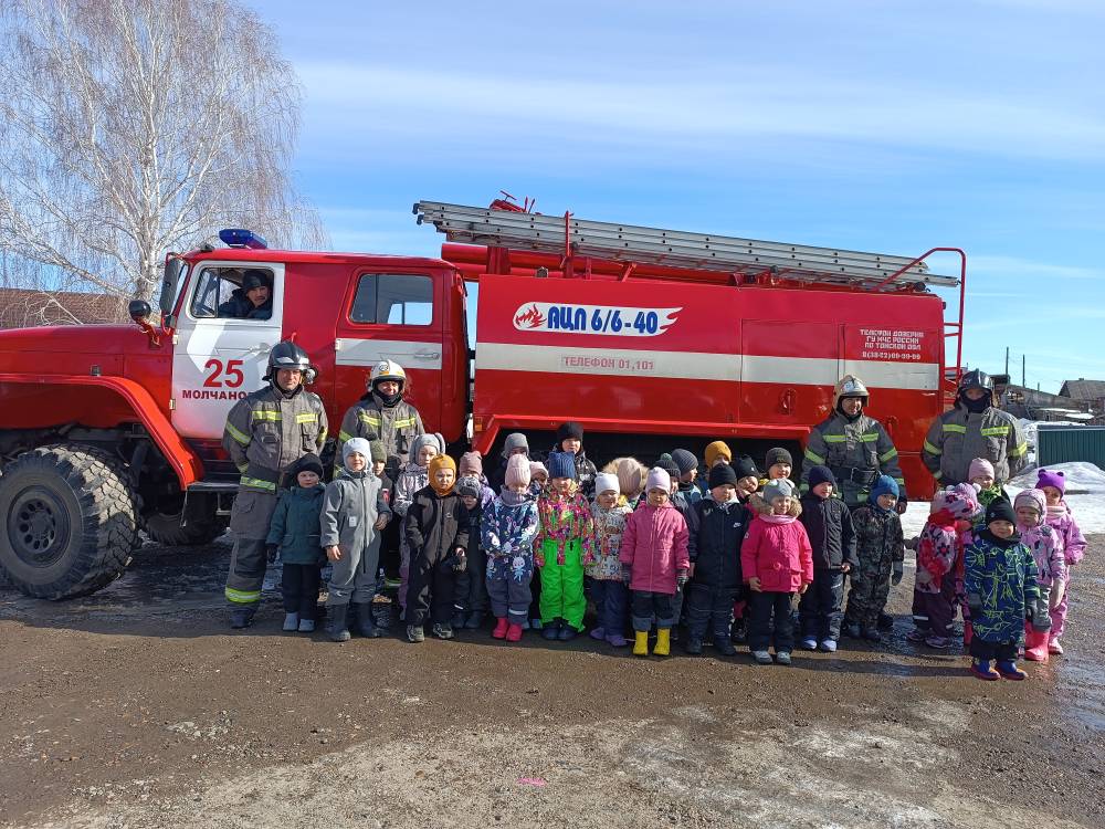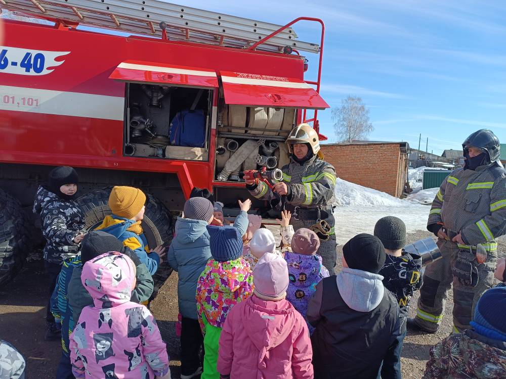 В рамках этого мероприятия в детском саду «Малыш» прошла встреча с настоящими пожарными, которые приехали в детский сад на своей служебной машине. Для дошколят, приезд пожарных стал настоящим сюрпризом. Ребята сразу обратили внимание на подъезжающую машину, их восторгу не было предела.