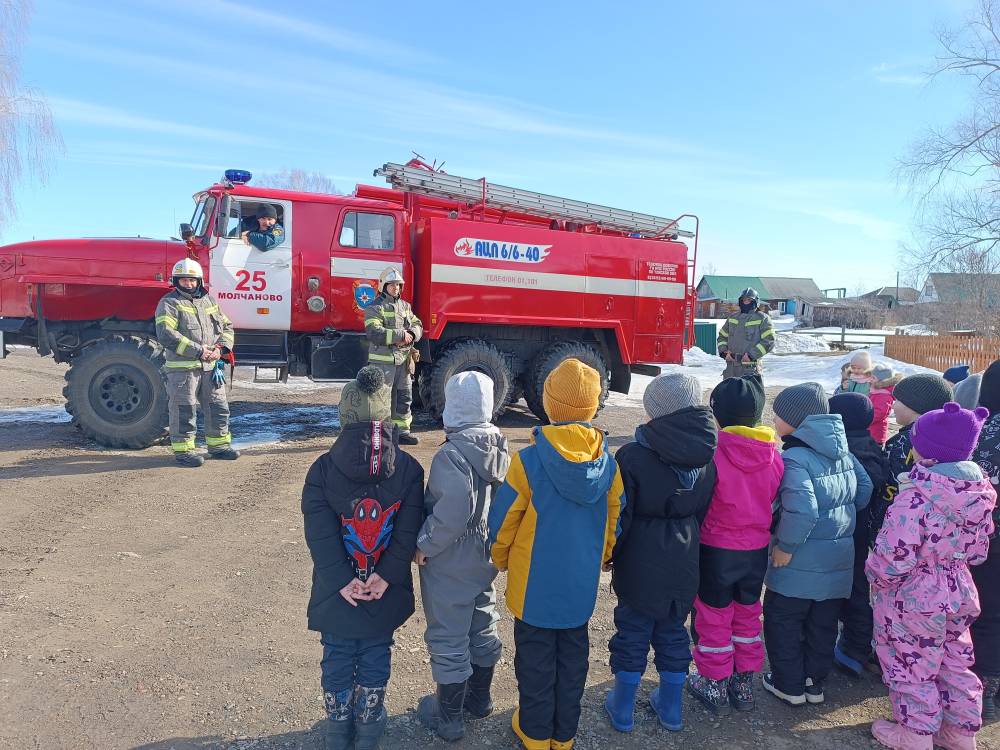Командир отделения 25 ПСЧ с. Молчанова — Михнюк Роман рассказал о правилах пожарной безопасности и о частых причинах возникновения пожаров. В доступной и увлекательной форме объяснил детям, как надо себя вести при экстремальных ситуациях, показал оборудования пожарной машины, костюм пожарного, средства защиты пожарных при работе в задымлённых помещениях, лестницы, которые приспособлены для разной высоты зданий.