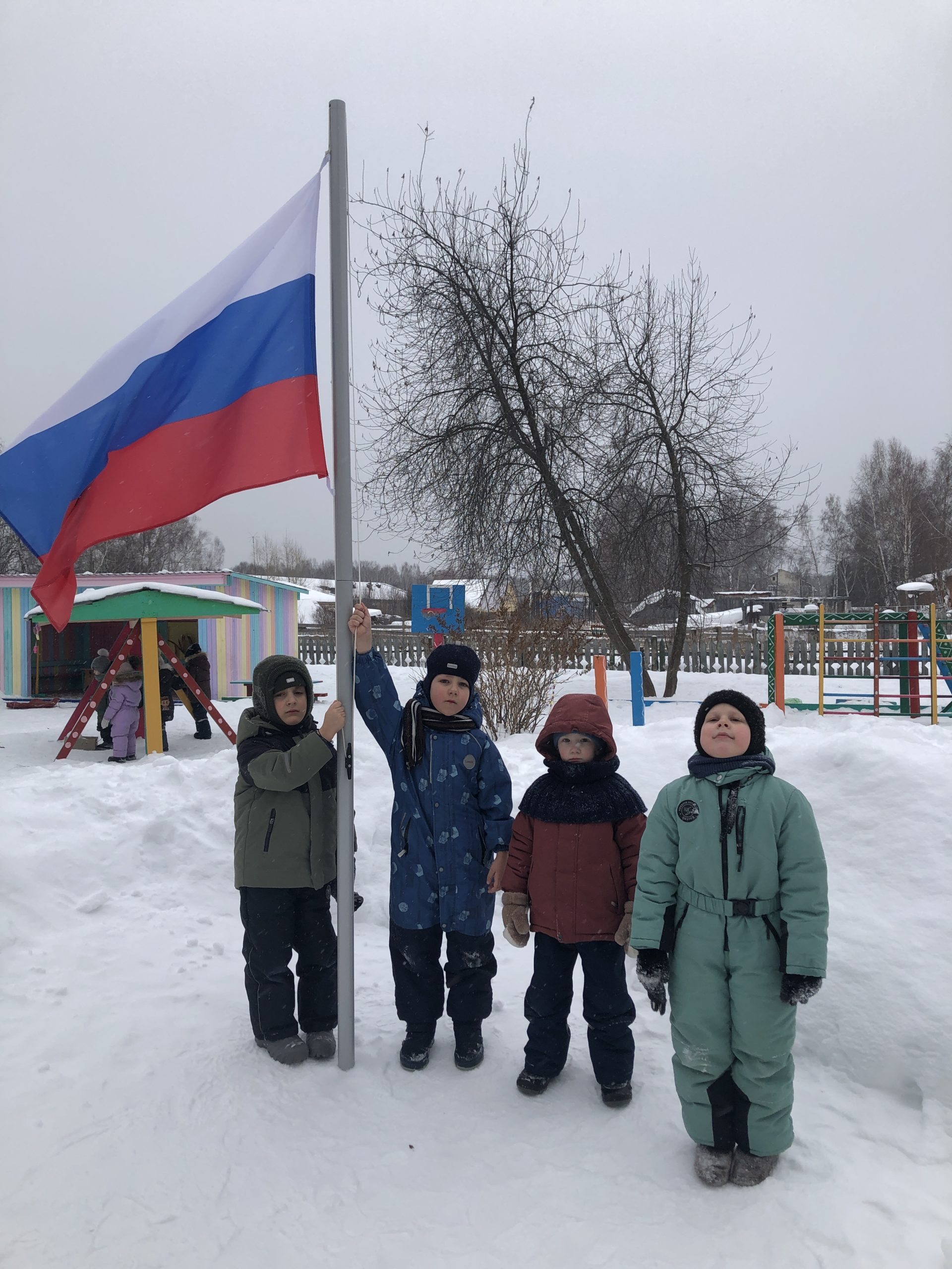 Сегодня, 24 февраля 2025 года, Государственный Флаг России в торжественной обстановке был поднят ребятами подготовительной группы Левой С.  и Глебом В.
