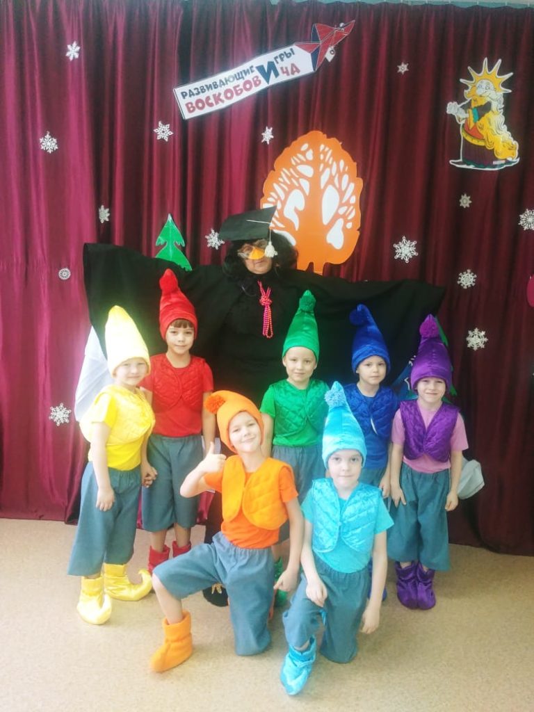 Весёлые гномы «Кохле, Охле, Желе, Зеле, Геле, Сели, Фи представились и исполнили весёлый танец.