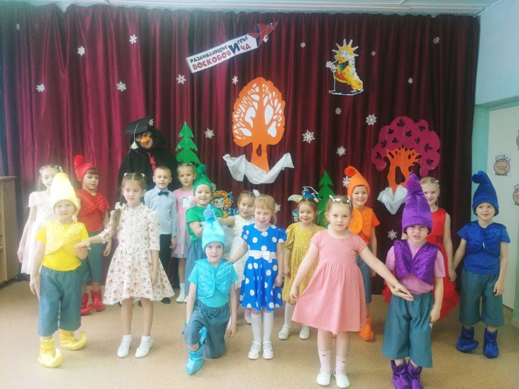 Герман Елизавета Сергеевна — старший воспитатель и Пикалова Ольга Алексеевна  — музыкальный руководитель. Выступление детей сопровождалось слайдами презентации по развивающим играм В.В.Воскобовича.