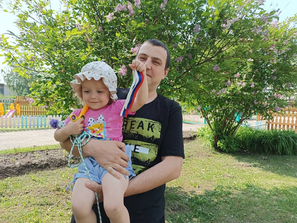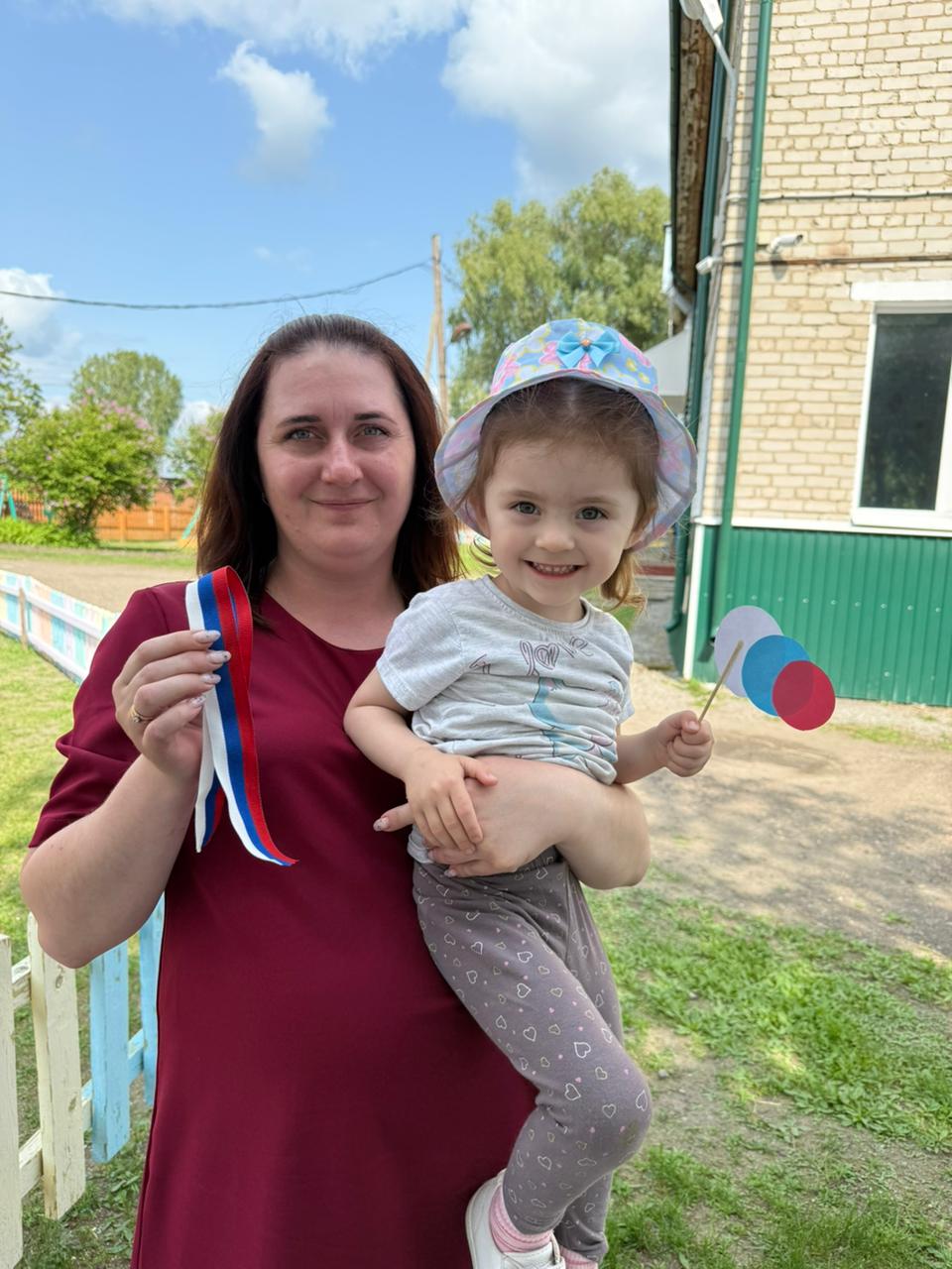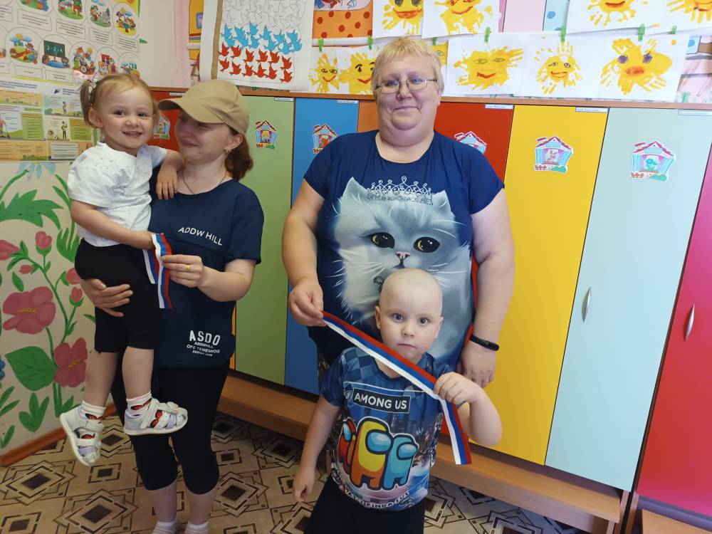 На праздник День России педагоги и воспитанники вручили триколорные ленточки родителям. Эти ленты имеют три цвета: белый, синий и красный, которые соответствуют цветам российского флага.