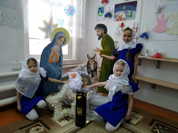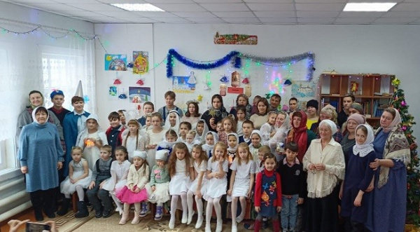 По окончании Всенощного бдения прихожане, дети, родители и гости собрались, чтобы вместе прославить Рождество Христово. Дети Воскресной школы к торжеству готовились основательно: учили слова, шили костюмы, оформляли зал, подготавливали атрибуты для спектакля. Дети под руководством Майковой Галины Павловны подготовили Рождественское представление, а так же исполнили Рождественские песни, тропарь и кондак, прочитали стихи. Ребята играли с вдохновением, старались поделиться радостью своих сердец о Родившемся Богомладенце со всеми присутствующими! И это им удалось. Атмосфера, в которой проходил праздник, была потрясающей! Также всех прихожан и гостей Праздника Рождества Христова поздравил настоятель Храма отец Андрей. Праздник получился ярким и радостным! Наш детский сад «Малыш» тоже принял участие в Рождественской встрече, он подготовил для маленького Иисуса подарок – стихи и песню «Рождество». В завершении праздника Галина Павловна обратилась к собравшимся с проповедью о Рождестве Христовом, а затем поблагодарила педагогов и воспитанников за прекрасное выступление, а затем детям были вручены сладкие подарки, а взрослым слова благословения за труды в деле духовно-нравственного просвещения подрастающего поколения.