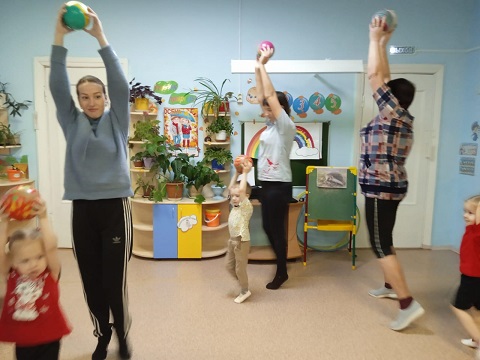 Наконец-то ковидные ограничения сняты и стены детского сада с удовольствием встречают на разнообразных мероприятиях родителей. В среду ребята младшей группы и их родители посетили спортивный детско-родительский клуб «Топотушки»по теме «Мой друг — мяч». В совместной деятельности выполняли разминку, упражнения с мячом, играли в подвижные игры: «Мой веселый звонкий мяч», «Прокати маме», «Догони мяч», «Разбери по цветам», работали с массажным мячом, в словесные игры: «Доскажи словечко», «Отгадай мяч», учились бросать и ловить мяч. А в четверг , инструктор по физической культуре Т.В.Рындина пригласила на спортивное развлечение «Вместе с мамой» родителей и ребят средней группы. И предложила ребятам прожить один день вместе с мамой. С чего начинается утро? С ласкового маминого слова: перекличка «Разбуди ласково», следом идет веселая музыкальная зарядка и начинаются будни — эстафеты: приготовь завтрак, веникобол (наведи порядок), собери ребенка в детский сад, в магазин за покупками и постирушки. И наконец-то вечер, когда маме можно отдохнуть, послушать красивую музыку, повальсировать, а ребятки-бабочки кружатся рядом со своими мамами и говорят какие они у них красивые, любимые, добрые, ласковые и т.д. и крепко-крепко обнимают их. Вот так весело, позитивно мы решили сразу несколько задач: воспитание культуры поведения; развитие физических качеств: быстроты, силы, координации, ловкости и т.д., создание благоприятной атмосферы для общения, сплочение детского коллектива, воспитание уважительного отношения друг к другу; научить детей проявлению любви к мамам.