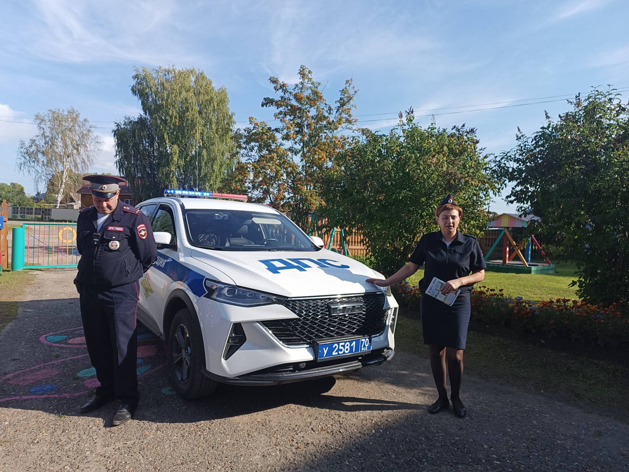 Во время проведения Декады детской дорожной безопасности в МБДОУ д/с «Малыш» 2 сентября 2025 года прошло познавательное мероприятие с привлечением патрульно-постовой машины. В первой половине дня к воротам нашего детского сада подъехала патрульно-постовая машина ГИБДД. Жаглина Галина Александровна, инспектор (по пропаганде БДД) отделения Госавтоинспекции ОМВД России по Молчановскому району старший лейтенант полиции, провела профилактическую беседу по обеспечению детской безопасности на улицах и дорогах нашего села.