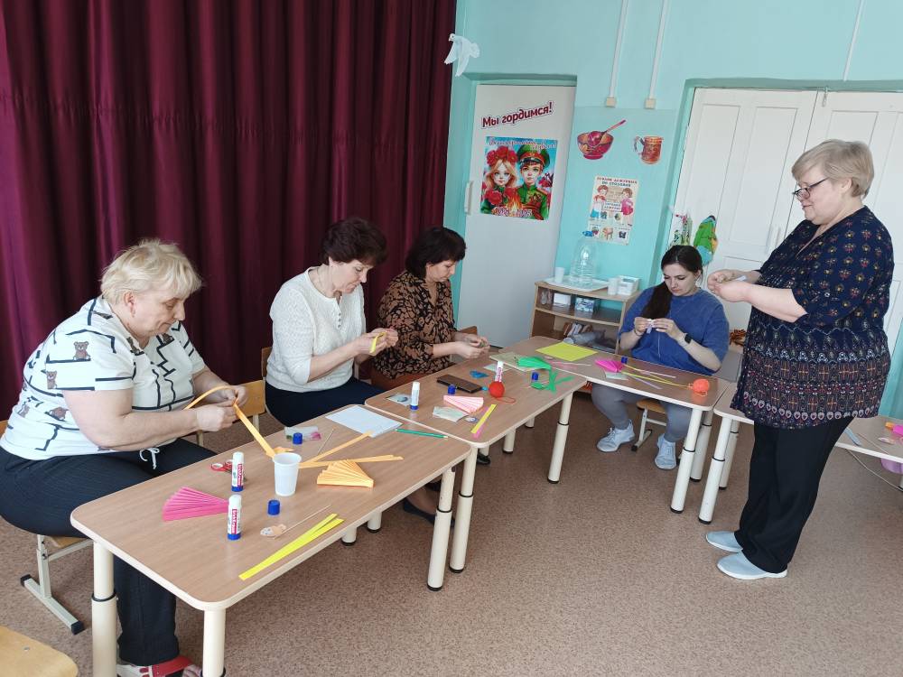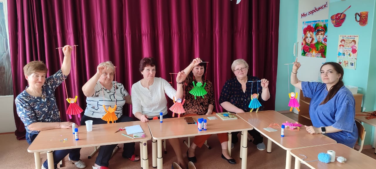 Театральная деятельность в детском саду – это интересная возможность раскрытия творческого потенциала ребёнка, воспитание творческой личности. Для организации детского театра нужны куклы различных систем, формирующие у детей определённые умения и навыки, стимулирующее детское творчество. Педагоги окунулись в мир творчества и изготовили кукол-марионеток из бумаги в технике «Оригами». Изготовленные куклы-марионетки стали частью подарка детям войны, которые были приглашены на праздничный концерт.