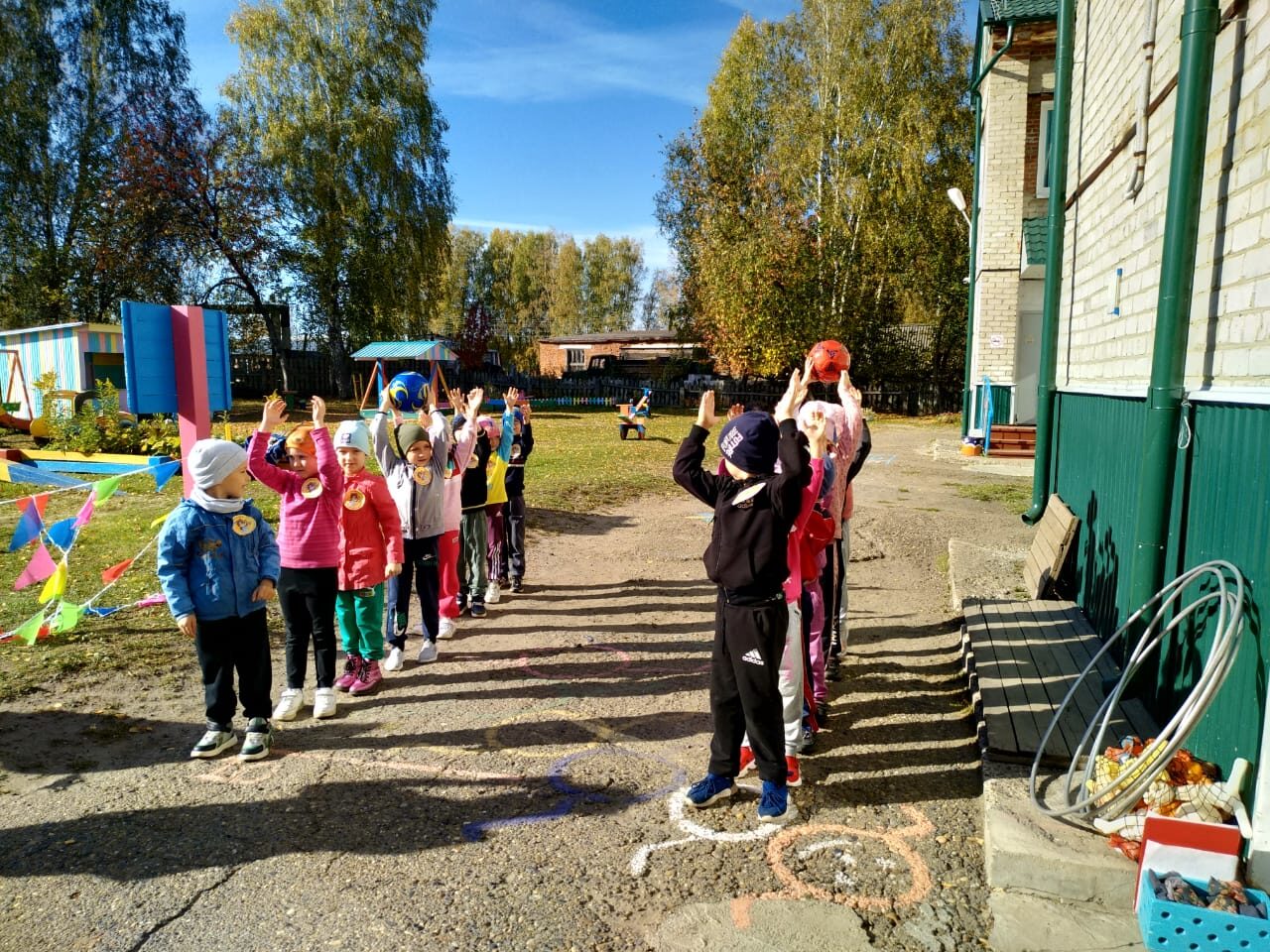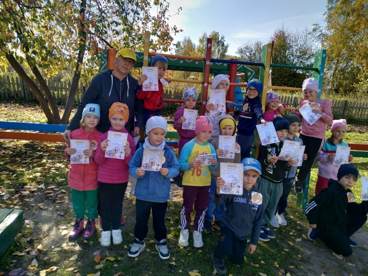 Замечательным , осенним днем состоялась наша традиционная спортивная товарищеская встреча «Осенний марафон» с ГДО «Родничок». Состязались ребята 6-7 лет в командах «Апельсинки» (д/с «Малыш») и «Спортики» (ГДО). Ведущий соревнований — инструктор физкультуры Т.В. Рындина пригласила всех на веселую музыкальную разминку. Затем болельщики ушли за линию площадки , а командам дали слово для представления. И начались задорные эстафеты: передача мяча над головой, пролезай-ка, ловкачи, попади в цель, перенеси игрушки. Участники старались показать все свои умения, сноровку, скорость, внимание. А болельщики в это время подбадривали команды. Ну и по окончанию вместе со своими старшими помощниками — воспитателями Л.В.Нестеренко и А.Г. Безгиновой пустились марафонским бегом вокруг д/сада. Настало время для награждений. Наша товарищеская встреча закончилась дружной победой , все получили грамоты и сладкие призы. Теплым рукопожатием мы прощаемся до следующих интересных встреч.