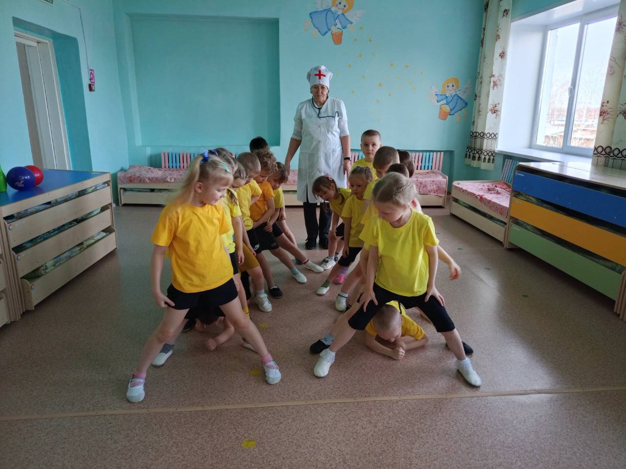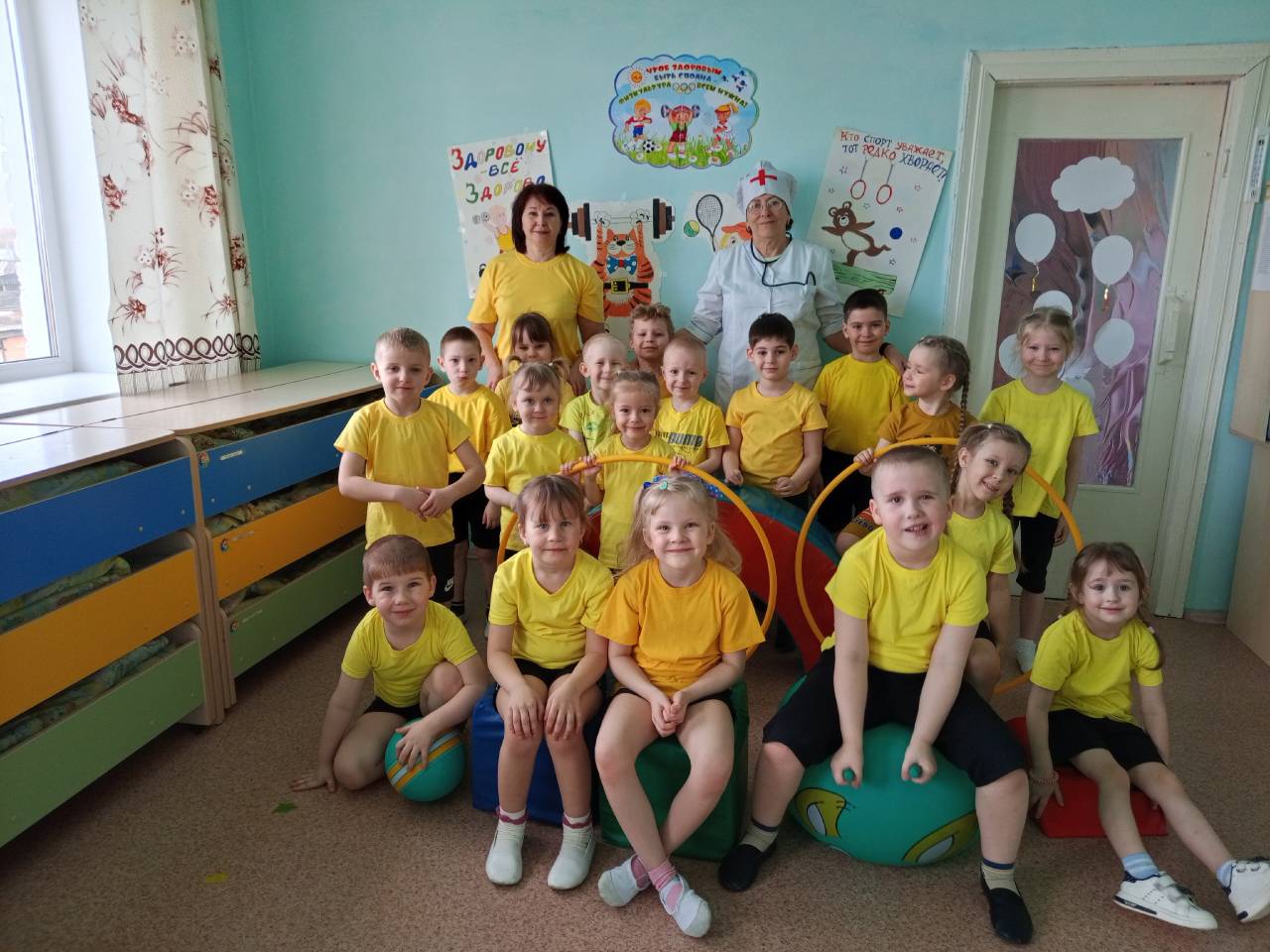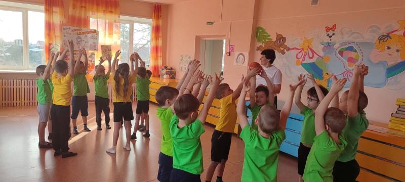 В подготовительной к школе группе День здоровья прошёл под девизом «Быть здоровыми хотим — помогает нам режим». С ребятами прошла беседа о полезных продуктах питания, необходимых для того, чтобы расти здоровыми и крепкими. И в продолжении прошли весёлые эстафеты «Попади в цель», «Передай мяч», Забей в ворота», «догони и обгони».