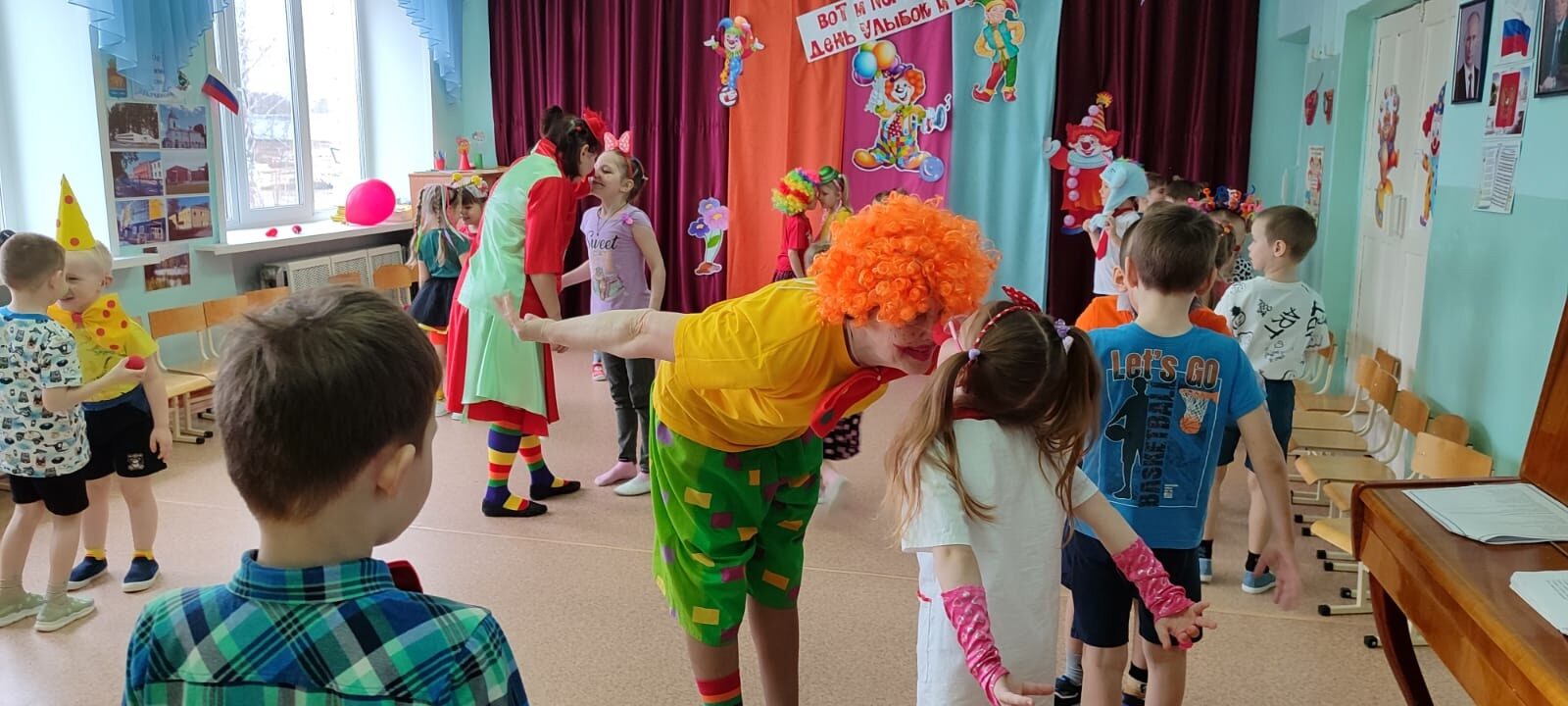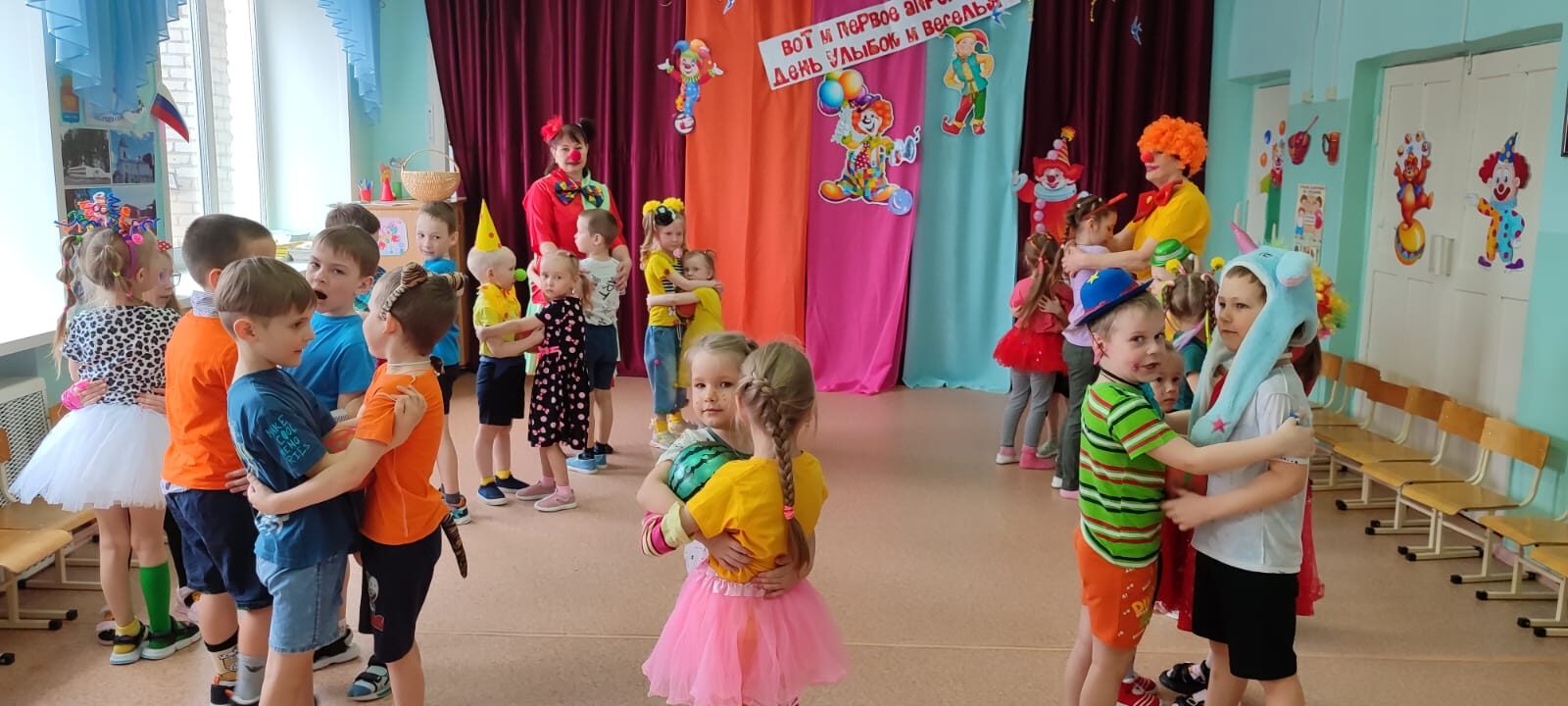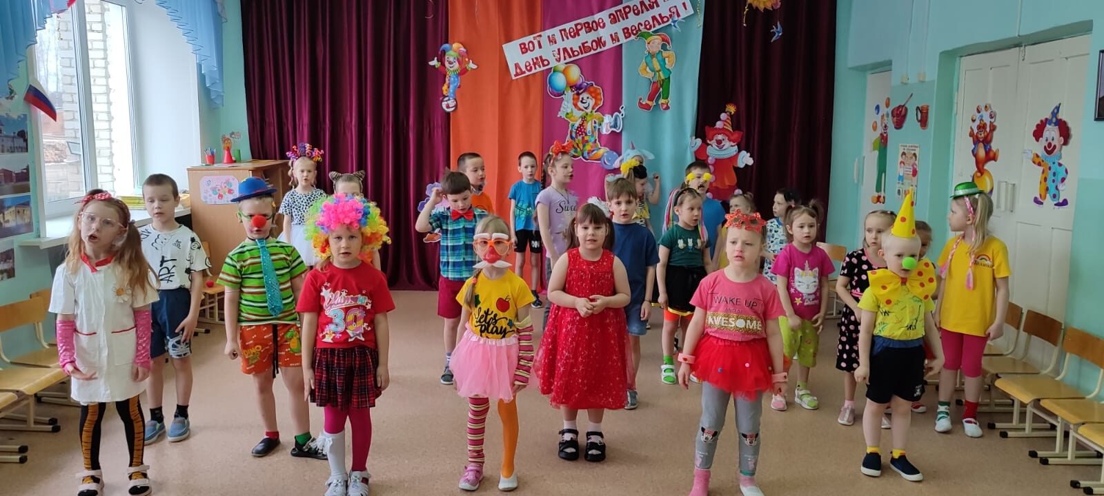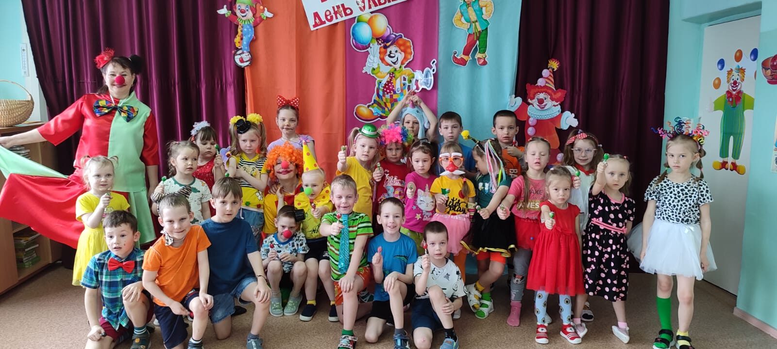 добрых шуток. Когда появился обычай обманывать 1 апреля и кто положил ему начало, никто сказать уже не может. Весёлые обманы и розыгрыши, смех, беззаботное веселье — все это уместно 1 апреля. В нашем детском саду праздник «День Смеха» стал традиционным ежегодным праздником. С утра воспитанников и родителей встречал весёлый Клоун Том (Нестеренко Л.В.) и громкая весёлая музыка. Клоун весело шутил, загадывал загадки — обманки, примерял большую «волшебную шляпу» и рисовал смешные конопушки, тем самым вызывая искренние, положительные эмоции, добрые шутки и улыбки. Наши воспитанники с радостью ждали этот праздник. Ведь, именно в этот день разрешается: делать всё наоборот: одевать всё шиворот-навыворот, гавкать, мяукать, кукарекать, шутить, смеяться и хохотать до упаду. Вот и в этом году 1 апреля у нас прошёл праздник-безобразник. Атмосфера подогревалась и подогревалась. Детей встречали два хулиганистых Клоуна – Чупа и Чупс (Васюкова И.М., Селигеева Л.Ю.), (Кузнецова Т.А., Широкова Н.В.). Они принесли детям игры, загадки, песенки и аттракционы. И, конечно же, Клоуны разрешали всем кричать, скакать, топать и шалить! Не было отбоя от желающих поучаствовать в играх и конкурсах. В конце праздника Клоуны всем пообещали вот по ТАКОЙ КОНФЕТЕ, но обманули, подарив только ФАНТИКИ. После превращения дети получили чупа – чупсы. Вот так весело мы провели наш праздник — безобразник!