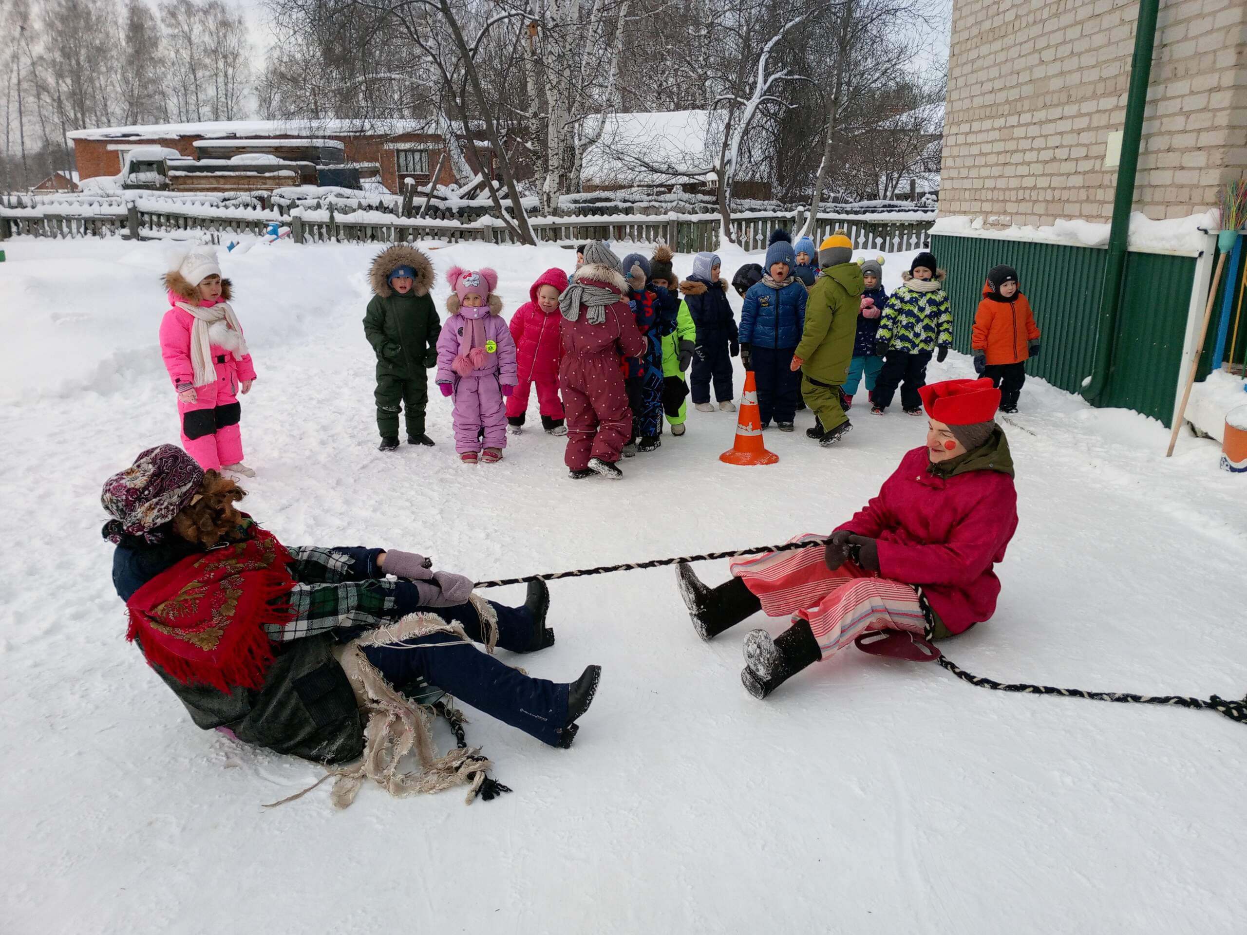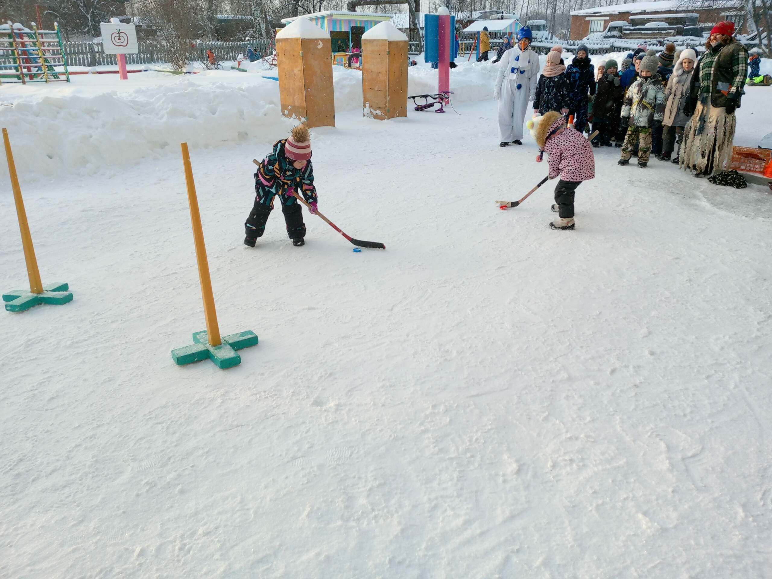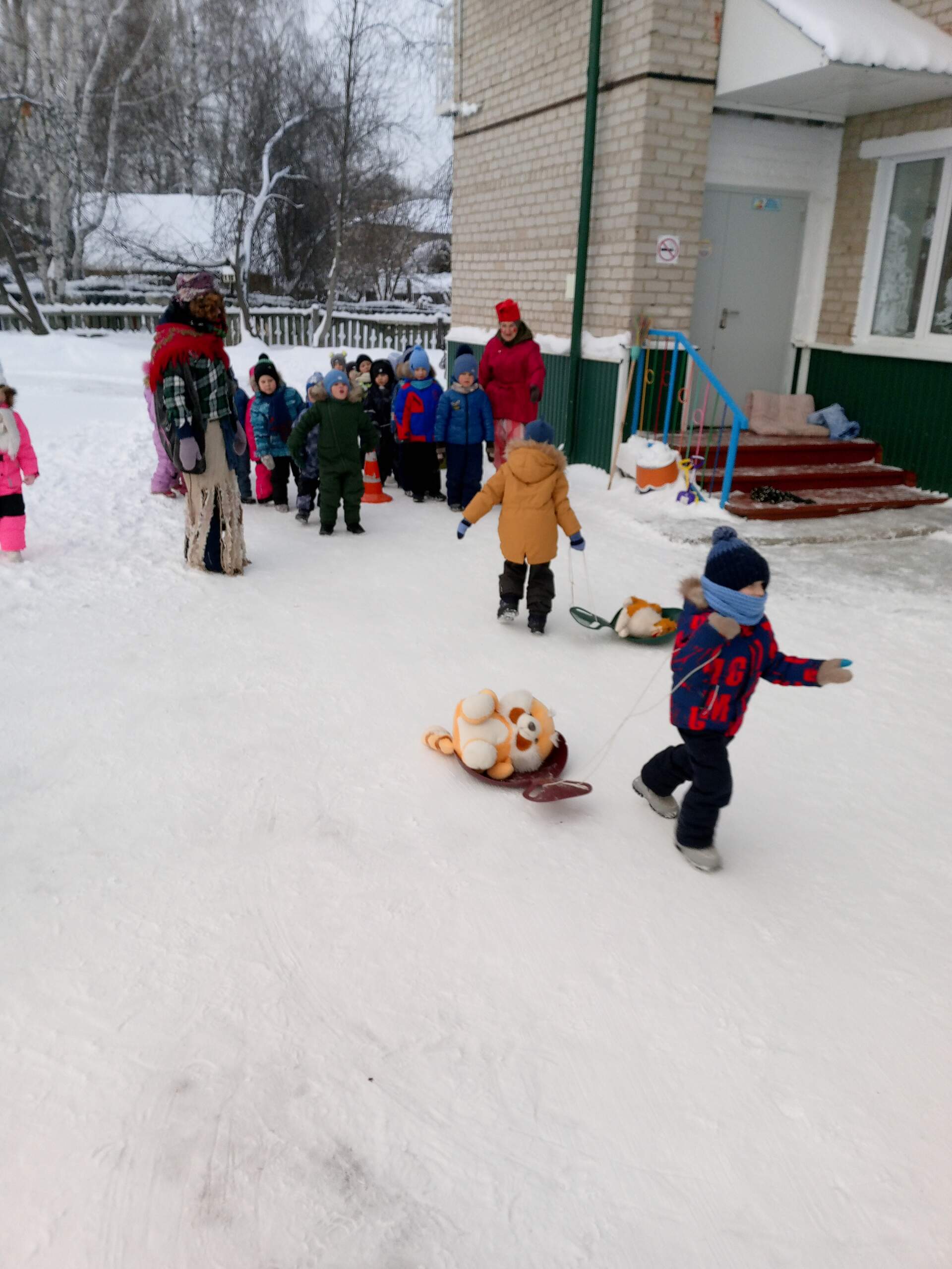 Основной целью мероприятий была пропаганда здорового образа жизни, обеспечение оптимального двигательного режима детей в течение всего развлечения, возможность применить двигательные умения и навыки, приобретенные детьми в процессе образовательной деятельности по физической культуре. И, конечно же, повеселиться на свежем зимнем воздухе. Мероприятия были направлены на воспитание положительных эмоций, двигательную активность, самостоятельность, на свободное и непринужденное взаимодействие между детьми, на развитие дружбы, чувства коллективизма. «День зимних видов спорта»- так называлось развлечение в подготовительной группе. Ребята рассказали и показали Снеговику (в-ль Л.В. Нестеренко) и Бабе -Яге (в-ль С.И.Скобелева) разнообразие зимнего спорта в эстафетах: «санки-ледянки», «меткий стрелок», «сугробы», «забей гол», «на одной лыже». В конце соревнований Баба-яга покатала ребят на своей волшебной метле, а Снеговик угостил «снежком». Ребята средней группы разбудили спящего Емелю (в-ль Л.В.Нестеренко), чтобы он наколдовал для развлечения «Зимние забавы» саночки. А он «по щучьему велению….» наколдовал Бабу-ягу (в-ль И.М.Васюкова). Но она оказалась доброй и принесла ребятам саночки. И все смогли поучаствовать в веселых играх и эстафетах с саночками: «прокати друга», «перевези игрушку», «не урони снежок», «займи место». И с большим удовольствием все померялись силой в перетягивании каната. Ну и как же без волшебства в предновогодние дни. Ребят младшей группы, инструктор по физкультуре Т.В.Рындина, пригласила в зимний лес за «волшебным деревом» , которое охраняет Мишка-сторож (в-ль Т.В.Жданова). Шли по лесу через препятствия: пролезая под кустами (тоннель), перешагивая через сугробы, поднимаясь и спускаясь с горки (мягкие модули). Мишка предложил ребятам поиграть в подвижные игры: «достань снежинку», «снежинки и ветер», «волшебная дудочка» и нарядить «волшебное дерево»- елочку игрушками , сделанными своими руками. А ребята решили подарить Мишке и елочке танец со снежинками. Малыши тоже путешествовали по зимнему лесу. сначала ехали на автомобиле, но потом из-за сугробов решили идти пешком. В лесу встретили полянку зайчиков. Поиграли в подвижную игру «Зайка беленький сидит». Потом попали на лисичкину полянку, поиграли с ней в снежки и подвижную игру «Лиса и зайцы». А вот на мишкиной поляне никого не было. Он спал и ребята не стали его будить. Мероприятия прошли весело, ребята были рады героям.