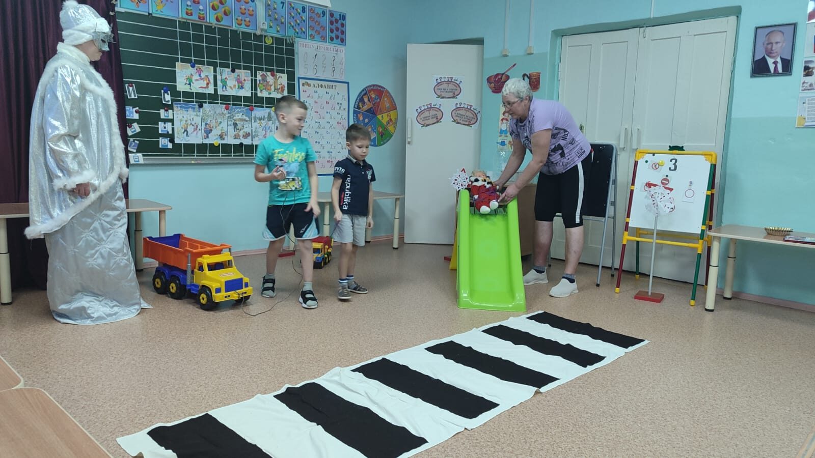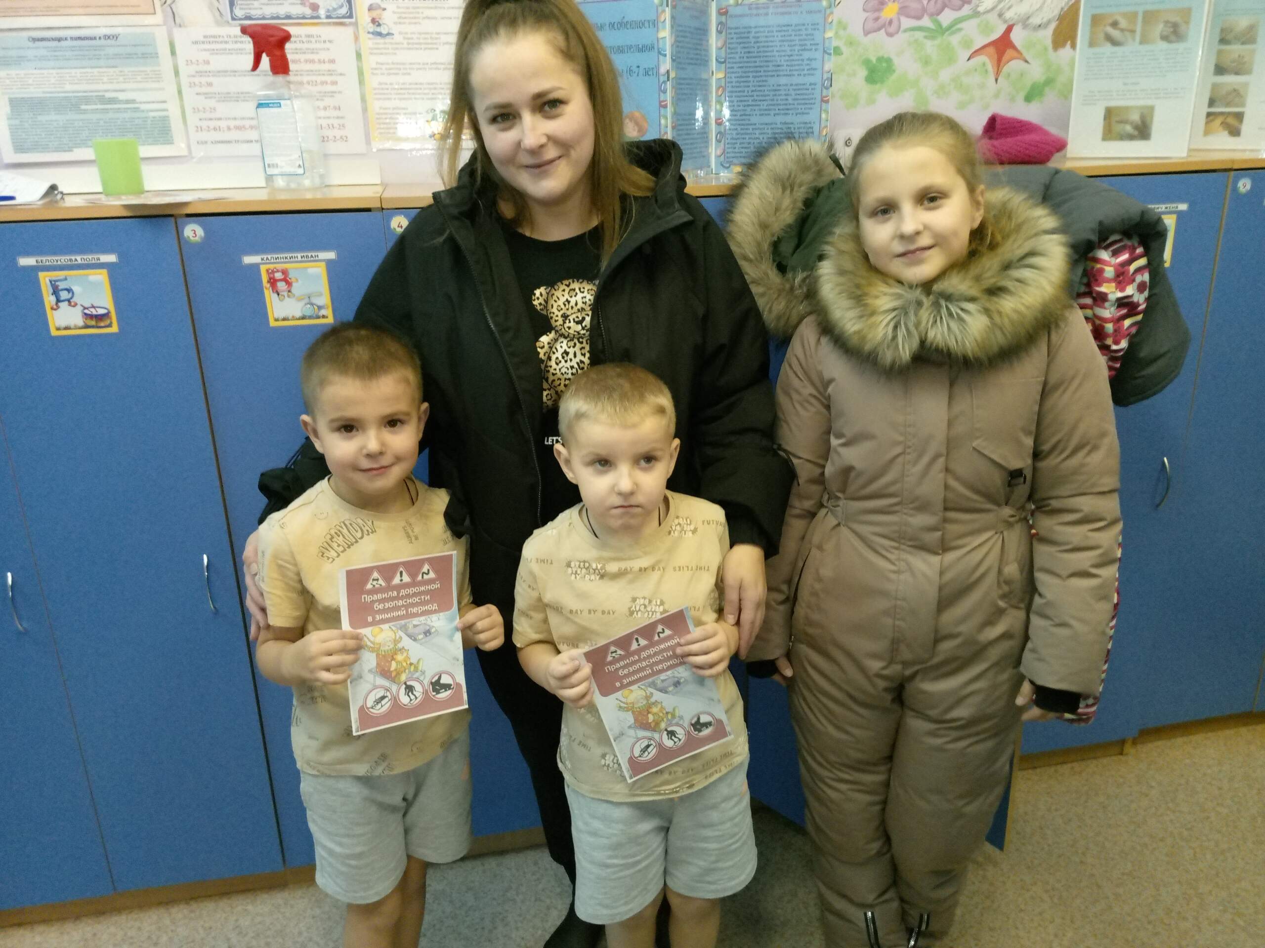 🚦Главная задача педагогов ДОУ — профилактические мероприятия, в целях сохранения жизни и здоровья юных участников дорожного движения, активизации работы по профилактике детского дорожно-транспортного травматизма. ❄️В этот раз мы решили провести мероприятие под названием «Маленькие экспериментаторы», задачей которого стало — выявить особенности правил дорожного движения в зимнее время. 🌨️Зима (в-ль Л.В. Нестеренко) заснежила все дорожные знаки, не зная какую пользу они приносят. Ребята подготовительной и средней группы вместе с инструктором по физкультуре Т.В. Рындиной решили исправить ее ошибку и объяснить Зиме, что такое дорожные знаки и как нужно вести себя на дороге в зимнее время. Проведя эксперимент с варежкой, сделали вывод, что мама должна держать ребенка за запястье при переходе через дорогу; эксперимент — маленькие пешеходы — выявил, что , при переходе через дорогу нужно снять капюшон (боковой обзор уменьшается); эксперимент -на горке — выявил, что горки должны стоять далеко от проезжей части; эксперимент со светоотражающим элементом — дети увидели как становятся они заметны в темноте. И самым интересным был эксперимент — сломанный светофор, который провела Зима. Есть светофор пешеходный, транспортный, а она сделала водяной. И на прощание подарила ребятам светоотражающие элементы. 🚔 На мероприятии присутствовала инспектор по пропаганде БДД Г.А. Жаглина. Она еще раз напомнила ребятам об удерживающих средствах в автомобилях и использовании светоотражающих элементов. 💥Мероприятие прошло познавательно, весело и интересно. Будьте внимательны на дороге, особенно в зимнее время! А закончился день акцией «Напомни родителям о ПДД», ребята вручили взрослым памятки о ПДД в зимнее время.